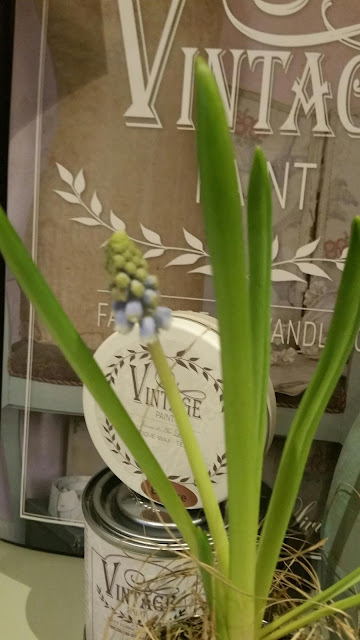 Det smarte ved de er delte, er at man f.eks kan plante i dem - og en enkelt blå perlehyacint passer lige hertil.